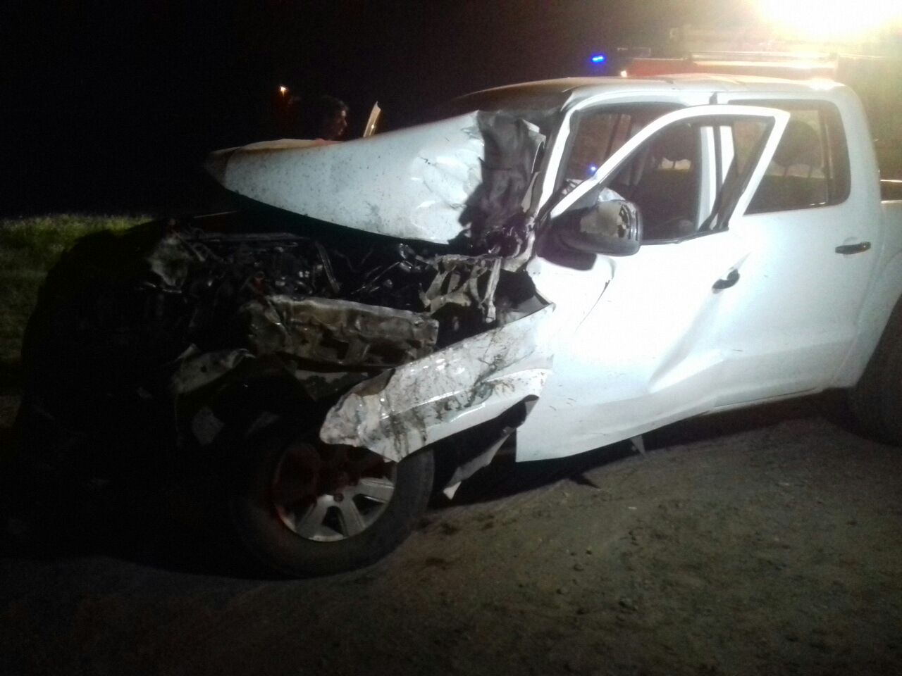 Pese al fuerte impacto solo tuvo una fractura en un dedo de su pie izquierdo. Su estado de salud es óptimo. El siniestro sucedió entre los dos accesos a la ciudad de América. La camioneta Amarok quedó muy estropeada.