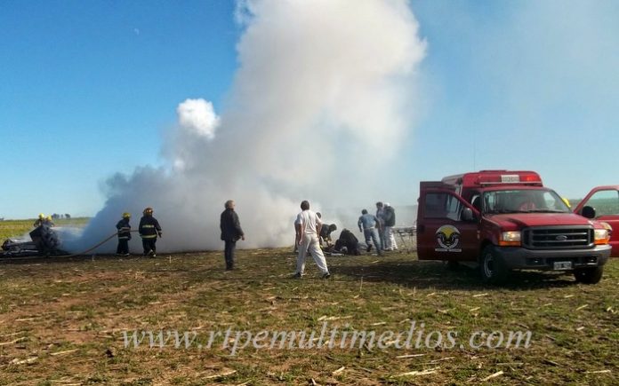 En la nave, un bimotor, estaban realizando vuelos de instrucción toque y despegue el piloto Matías Lopez, de nuestra ciudad y el instructor Jorge Irastorza de General Pico, según confirmó el presidente de la institución Ezequiel Paul a Distrito Interior. Según dichos de testigos, al parecer luego de despegar y utilizando uno de los motores, esto se desprende al observar la hélice del otro motor en bandera, el avión no habría tenido sustentabilidad debido a la falta de velocidad y por ese motivo se precipito a tierra, incendiándose de inmediato, quedando reducida prácticamente a cenizas. Las primeras versiones indican que ambos ocupantes estaban con vida y se movilizaban por sus propios medios, aunque Lopez lo hacía con menor dificultad. Fueron Trasladados al Hospital Municipal.