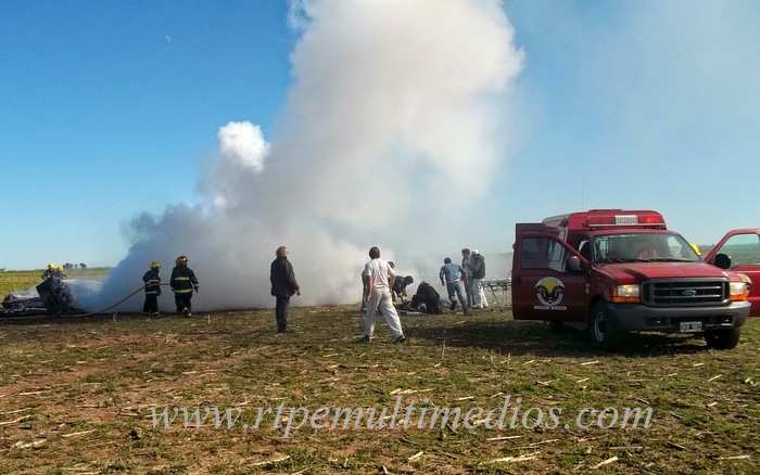 Sucedió cerca de las 10 horas en un campo lindero al aeródromo de esa ciudad. Los tripulantes, uno de General Pico y otro de Villegas, sufrieron quemaduras de consideración y fueron derivados de urgencia a Buenos Aires.