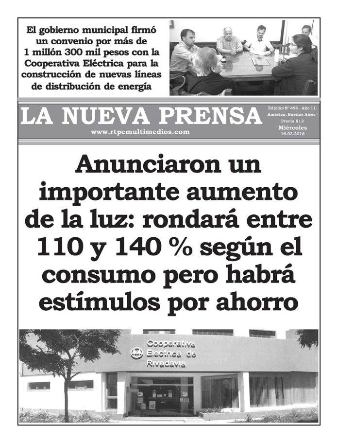 InicioLocalesCompartimos Tapa y Contratapa de La Nueva Prensa Locales Compartimos Tapa y Contratapa de La Nueva Prensa Por La Nueva Prensa 15/03/2016 0 222 Compartir FacebookTwitterWhatsAppTelegramEmailImprimir Títulos de LNP de la portada y contratapa Noticia anteriorRío V: Continúan los trabajos para recuperar el camino que une Sansinena con Villa SauzeNoticia siguienteEl municipio firmó un acuerdo por más de 1 millón de pesos para la construcción de una nueva línea eléctrica Noticias Relacionados Destacadas Comenzaron a regir desde el 1 de abril las nuevas tarifas de electricidad en toda la provincia de Buenos Aires 01/04/2026 Destacadas Ximena González rompe el silencio y exige la indagatoria del acusado por la muerte de su madre 19/03/2026 El Campo y la Ciudad «Asociación de capitales: la única vía posible para un frigorífico de alta tecnología a nivel local» 18/03/2026 DEJA UNA RESPUESTA Cancelar respuesta Comentario: Por favor ingrese su comentario Nombre:* Por favor ingrese su nombre aquí Correo electrónico:* ¡Ha ingresado una dirección de correo electrónico incorrecta! Introduzca aquí su dirección de correo electrónico Sitio web: Guarde mi nombre, correo electrónico y sitio web en este navegador para la próxima vez que comente. Current ye@r * Leave this field empty Últimas Noticias Retos virales en las escuelas: «En la región tenemos unas 15 denuncias, esto no es joda» 29/04/2026 El caudal del Río Quinto en Rivadavia se cuadruplicó en los últimos 20 días 23/04/2026 El diario La Nación reflejó el trabajo que hace 20 años ejerce un nativo de Colonia Seré 20/04/2026 En América hubo una importante movilización docente reclamando la defensa del IPS 20/04/2026 Cargar más