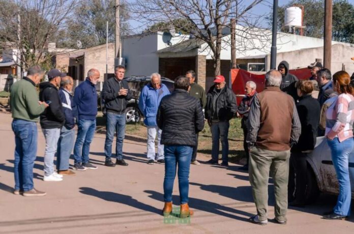 El intendente Martínez junto al secretario de Gobierno y los arquitectos Juan Dufourc y José Carabelli -a cargo de la Secretaría de Obras Públicas- se reunieron con vecinos del barrio para dialogar sobre la importancia de la obra de cloacas realizada con fondos municipales.