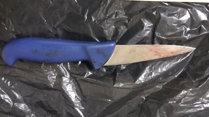 Por este hecho, ocurrido el martes pasado en una vivienda de calle Lavalle en la ciudad de Azul, agentes uniformados de la DDI realizaron un allanamiento en una casa ubicada en Malere entre España y Leyría, donde incautaron un cuchillo de cabo plástico de color azul con manchas hemáticas.
