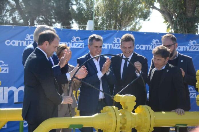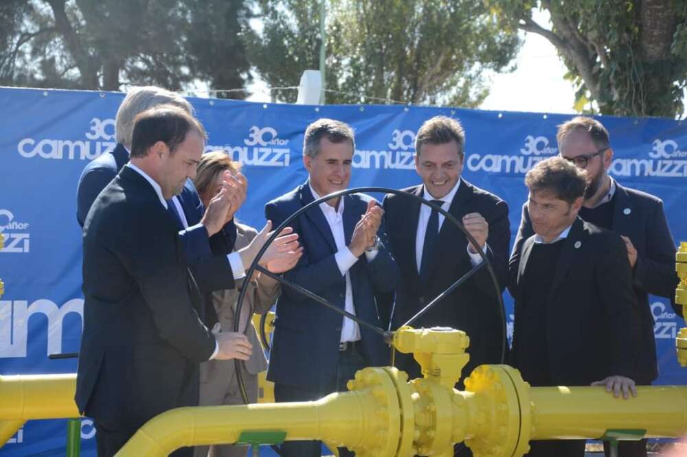 El miércoles 10 de mayo quedó inaugurada la megaobra. Se invirtieron 2.400 millones de pesos. Estuvieron en la ciudad cabecera una nutrida comitiva de dirigentes políticos. En el escenario también hizo presencia el senador nativo de aquí, Juancy Martínez (FdT). Hablaron en el acto: el intendente Javier Reynoso; el empresario Jaime Barba (presidente de Camuzzi); Osvaldo Pitrau (interventor de ENARGAS); la secretaria de Energía, Flavia Royón; Sergio Massa, ministro de Economía; y el gobernador de Buenos Aires, Axel Kicillof.