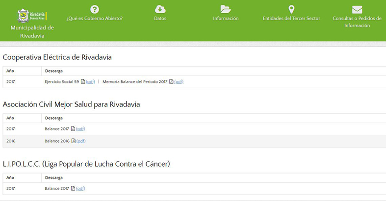 La Cooperativa Eléctrica de Rivadavia la primera institución que adhirió a lo propuesto por el intendente municipal en su discurso de apertura de sesiones del HCD. En aquella oportunidad, Javier Reynoso instaba a presentar los balances anuales de las Entidades del Tercer Sector en la plataforma municipal de Gobierno Abierto.