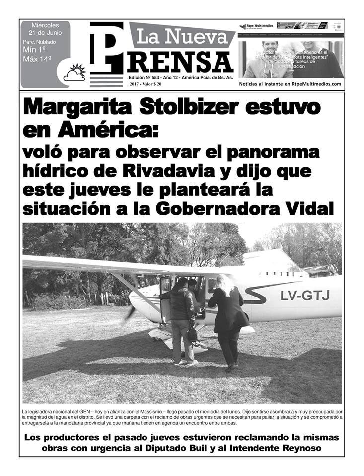 InicioLa Nueva PrensaLNP - Tapa 21 de junio La Nueva Prensa LNP – Tapa 21 de junio Por La Nueva Prensa 20/06/2017 0 245 Compartir FacebookTwitterWhatsAppTelegramEmailImprimir Noticia anteriorTriunfos de Rosolén y Criado en la interna de Rivadavia Primero: votaron algo más de 1100 personasNoticia siguienteAnálisis de la Interna: «Votaron 300 personas menos comparándola con la del 2013, pero hay un dato no menor, por la crisis hídrica este año no se hizo campaña» Noticias Relacionados La Nueva Prensa Última Noticia – Ante el avance del Covid el intendente Reynoso limitará los horarios y las actividades en Rivadavia 18/05/2021 La Nueva Prensa Tapas LNP – 23 de diciembre 2020 22/12/2020 La Nueva Prensa Tapas LNP – 18 de noviembre de 2020 17/11/2020 DEJA UNA RESPUESTA Cancelar respuesta Comentario: Por favor ingrese su comentario Nombre:* Por favor ingrese su nombre aquí Correo electrónico:* ¡Ha ingresado una dirección de correo electrónico incorrecta! Introduzca aquí su dirección de correo electrónico Sitio web: Guarde mi nombre, correo electrónico y sitio web en este navegador para la próxima vez que comente. Current ye@r * Leave this field empty Últimas Noticias Dejar de perder dinero en zonas casi improductivas: «La lógica económica detrás de los corredores biológicos» 14/04/2026 «Cosecha récord y el impacto global en los insumos» 13/04/2026 «Compactación subsuperficial: el desafío de mirar ‘debajo de nuestros pies’ tras 30 años de siembra directa» 13/04/2026 Marcelo Marcos y la situación hídrica: «Hoy los volúmenes no son preocupantes» 10/04/2026 Cargar más