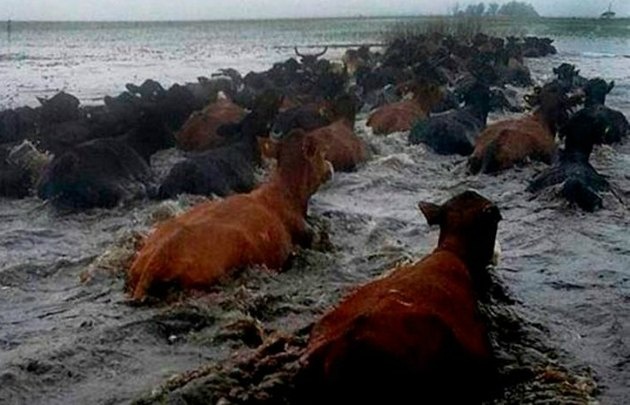 La frase le pertenece a Cristian «Pilo» Vicente – encargado del establecimiento Don Luciano de Eduardo Bathis – quien debió utilizar un kayak para poder buscar  la traza ideal y arriar unas 250 cabezas de ganado. “A unos 7 kilómetros de Fortín medí la profundidad del agua con el remo. Hay más de dos metros y no pude tocar el fondo”.