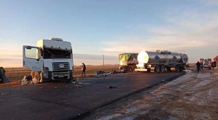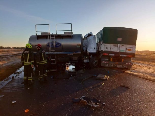 Un camión de leche que iba de Trenque Lauquen a 30 de Agosto se cruzó de carril y chocó de lleno a un cerealero que circulaba en dirección contraria.