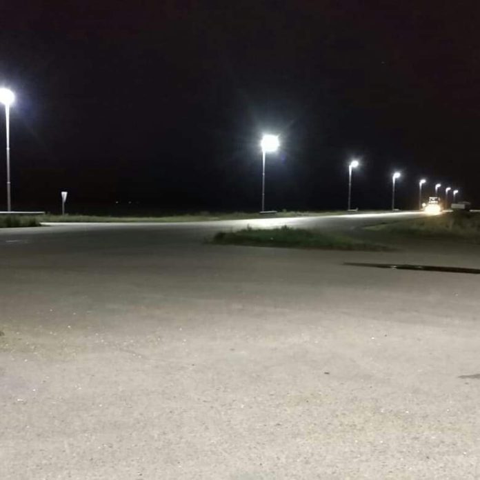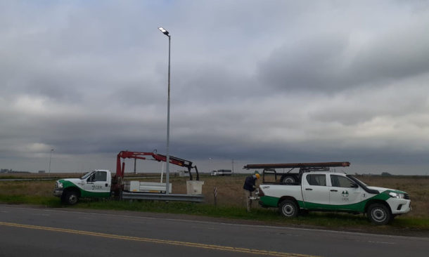 Desde la Cooperativa Eléctrica de América estuvieron realizando tareas de mejoras en el cruce de las trazas nacional y provincial. La iluminación es de muy buena calidad.