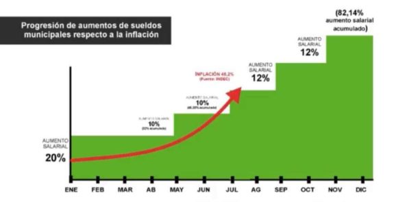 Este premio se suma, además, al aumento del 12% en los salarios básicos que será efectivo el próximo mes. De esta manera, el incremento salarial en lo que va del año sería de un 82,14%.