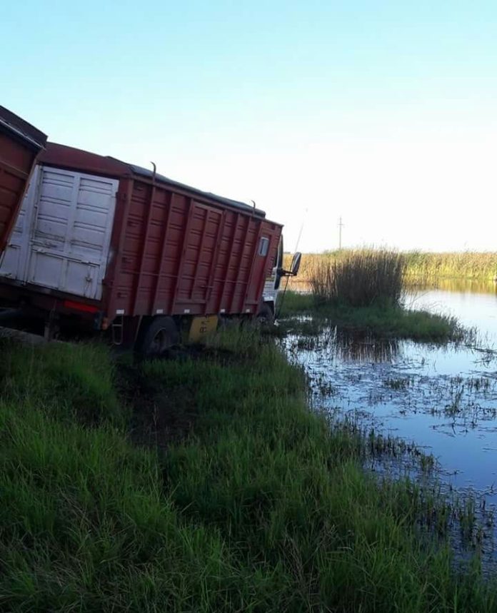 El vehículo pesado se despistó de la cinta asfáltica por los pozos y el mal estado de la traza nacional y terminó cayendo al agua que se encuentra en una de las banquinas. El propietario del transporte es de apellido Santos y el chofer que lo conducía es Arias – quien afortunadamente resultó ileso – ambos de la ciudad cabecera del partido de Rivadavia.