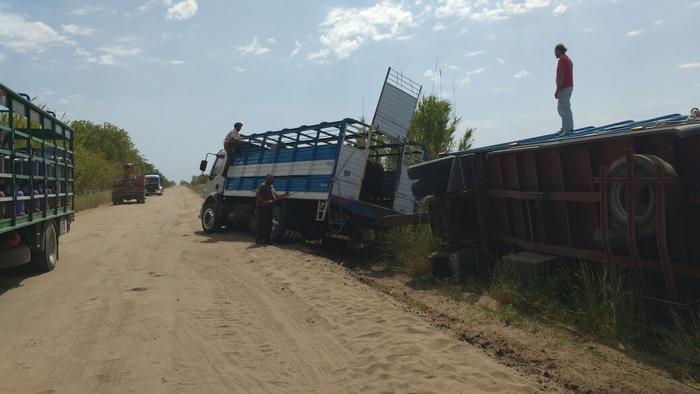El siniestro ocurrió el martes 28 de noviembre después de las 9 de la mañana en el camino principal entre la mencionada localidad y Roosevelt. El transporte pesado – propiedad de Daniel Pires – era conducido por Raúl Galván, quien afortunadamente solo tuvo golpes leves.