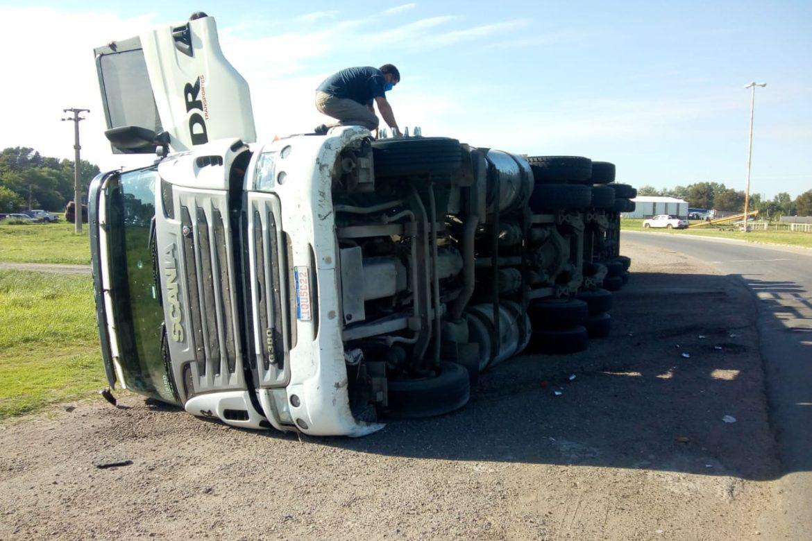 No es la primera vez que pasa un siniestro de esta envergadura. Un camión de transporte internacional proveniente de Brasil volcó hoy a la mañana en el cruce de las rutas 5 y 33.