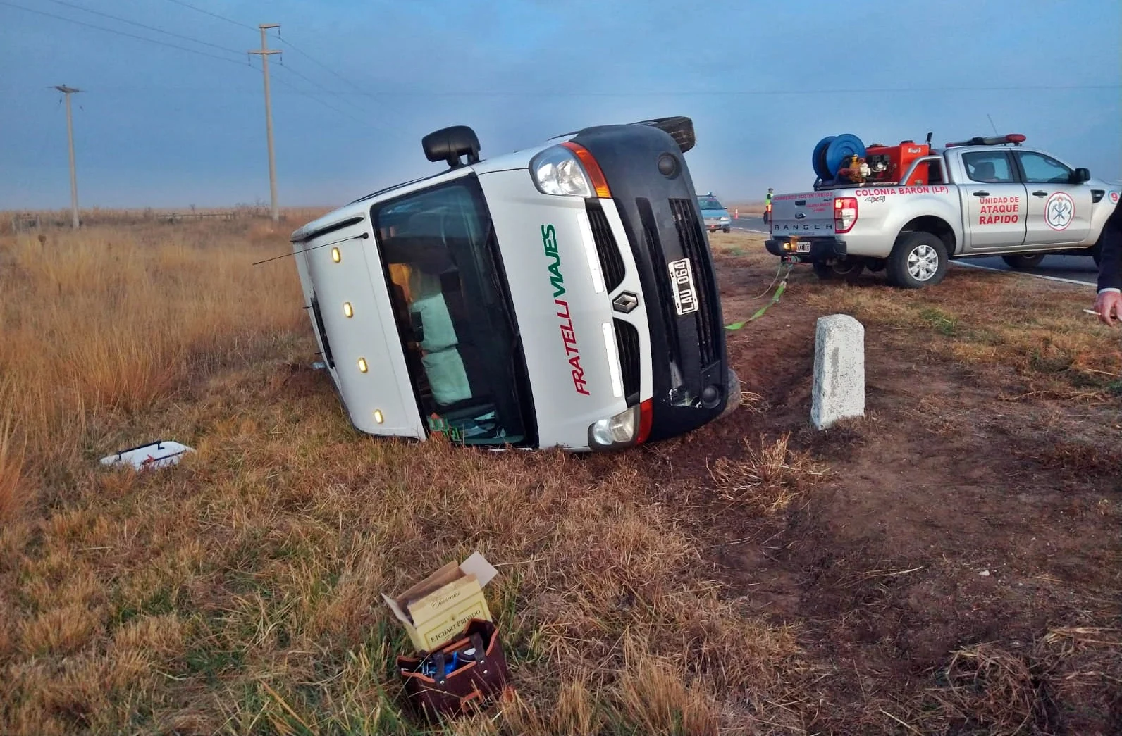 Alrededor de las 7:20 de la mañana una trafic Renault Master, volcó en cercanías de la localidad de Villa Mirasol y Colonia Barón, en el vehículo se encontraban alumnos y profesoras que se dirigían hacia la ciudad de santa rosa.